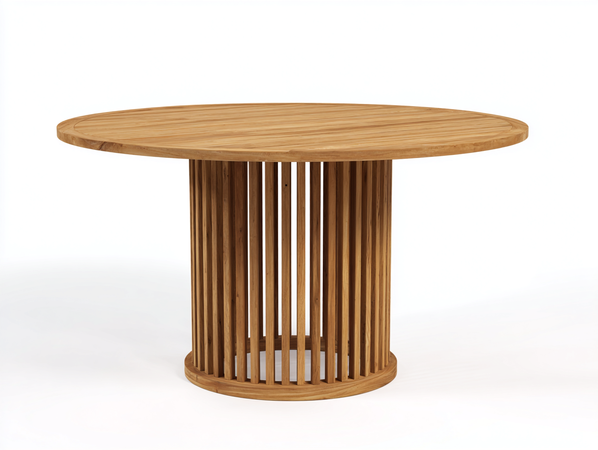 Outdoor Tables-Solid Wood-145x145x75 cm-Brown-Modern Cylindrical Slatted Design