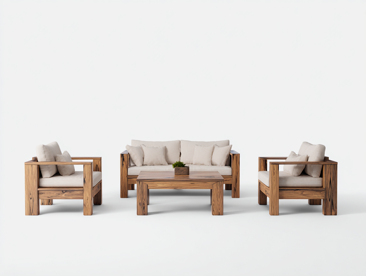 This outdoor sofa set is designed for comfortable seating in patios, garden spaces, and terraces. The structured form and natural colour palette create a practical and inviting outdoor environment for everyday relaxation.