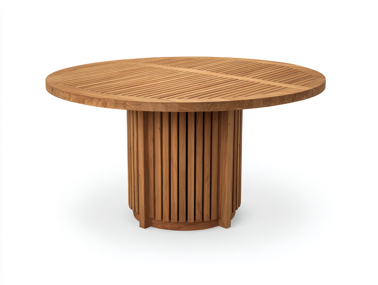 The round tabletop enhances usability and allows comfortable seating arrangements. The central pedestal base provides stable support and maximises legroom. Its clean modern design integrates easily into various outdoor furniture styles.